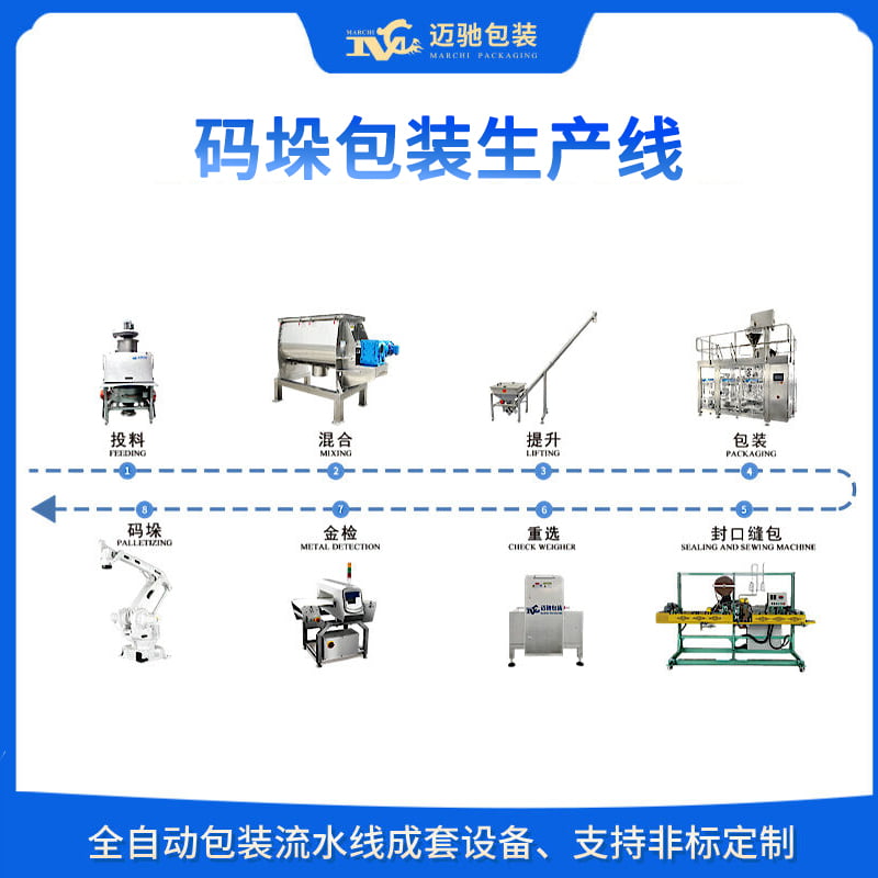 迈驰包装设备是一家26年食品码垛包装生产线工厂,旨在提高产品的包装和码垛效率。通过集成多种自动化设备,如装箱机、封箱机、码垛机等,可以实现产品从包装到码垛的全流程自动化处理,提升生产效率和包装质量,您需求的包装机生产线厂家、包装生产线设备厂商可以点击详情了解更多。